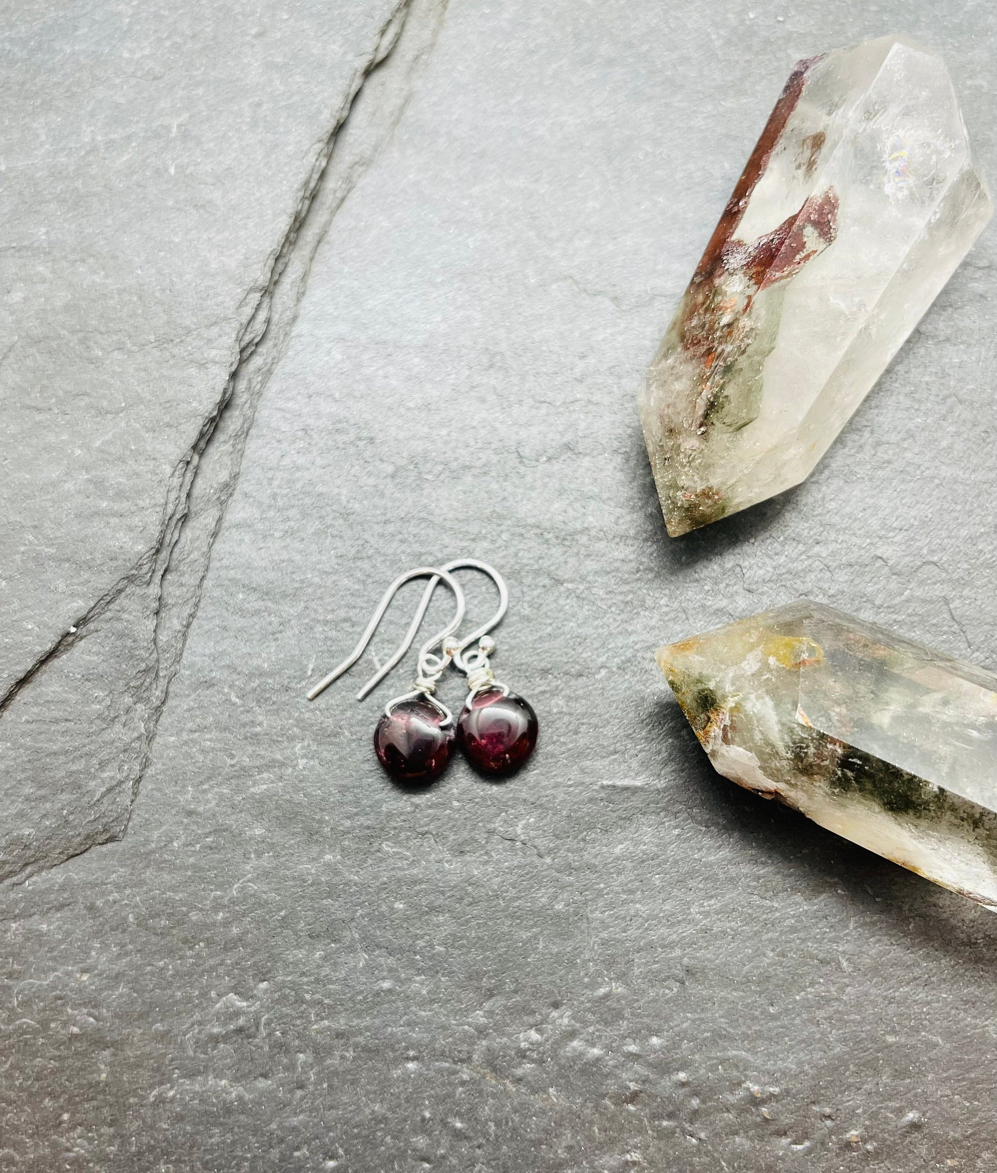 Garnet Earrings, Protection Crystal Jewelry, .925 Sterling Silver Stone Jewelry, Empath Protection Gemstone Earrings