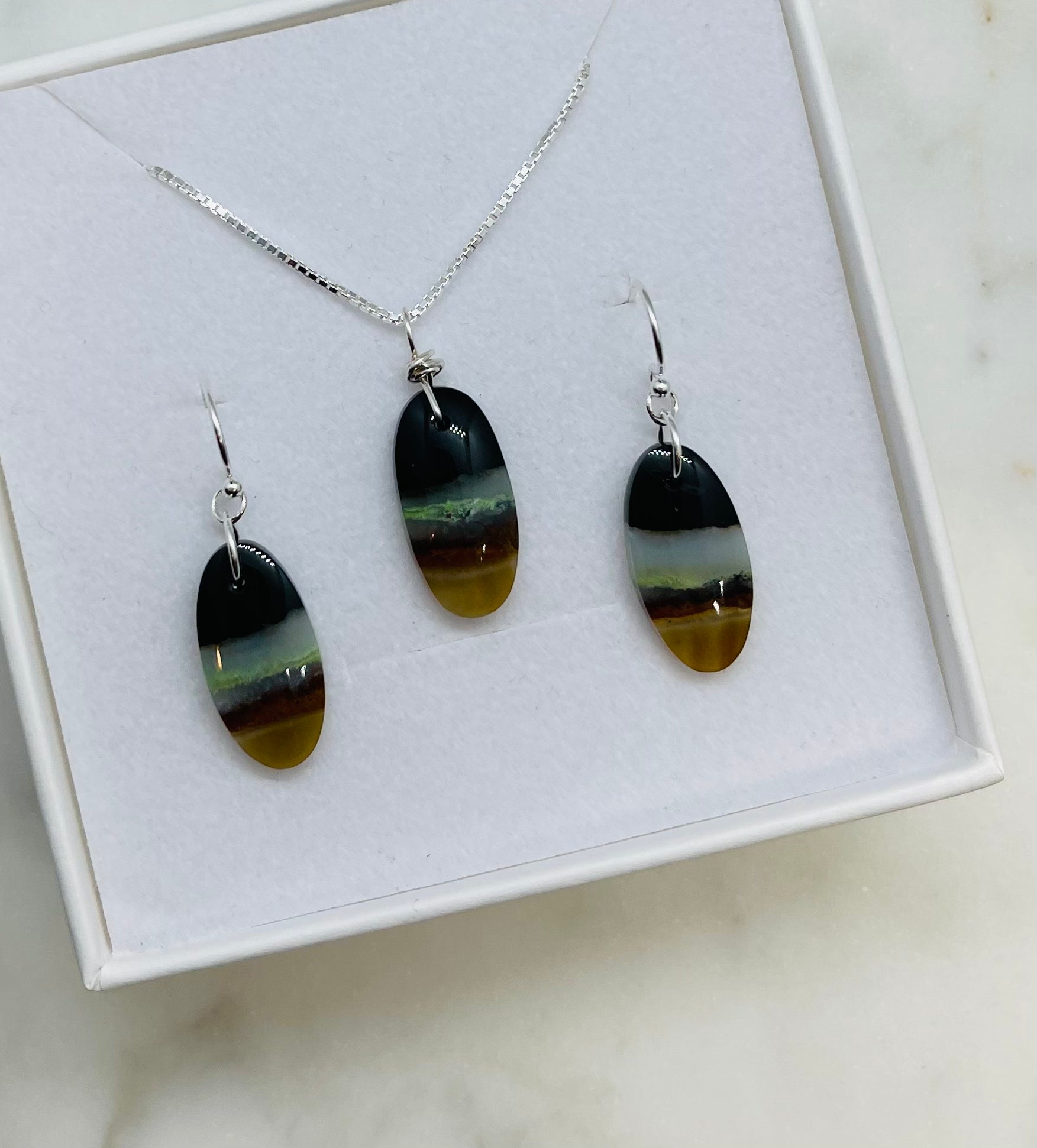 Discover the beauty of nature preserved through time with our exquisite Petrified Wood Gemstone Earrings and Necklace Set. This one of a kind set is meticulously crafted from ancient wood that has been fossilized over millions of years. Transforming into stunning stone with rich earthy tones.
