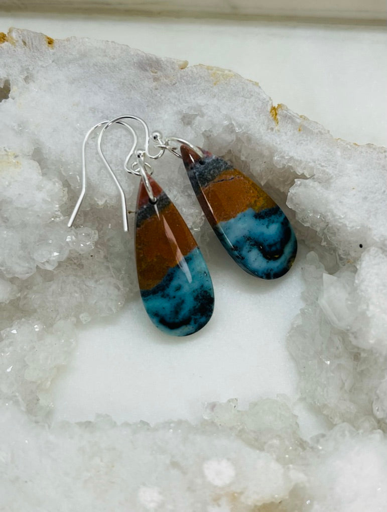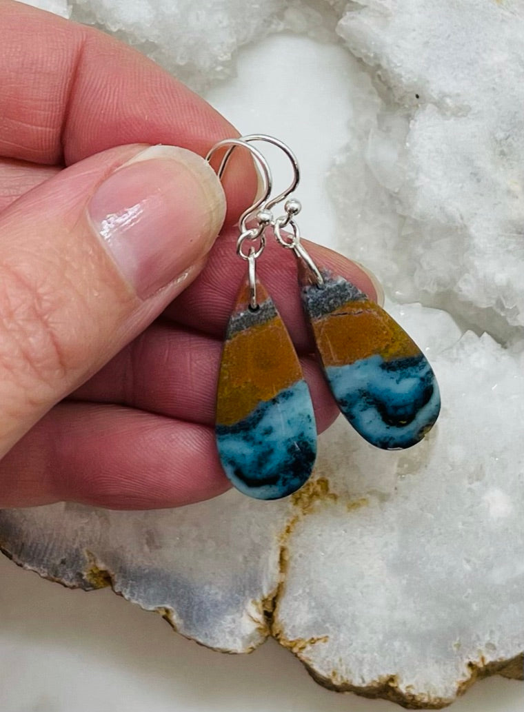 Chrysocolla Gemstone Dangle Earrings with Sterling Silver Ear Wires, Made in Virginia.