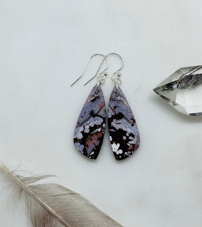Artisan Earrings for Women, River Jasper Gemstone, Sterling Silver, Made in Virginia, Jewelry Gift for Anniversary