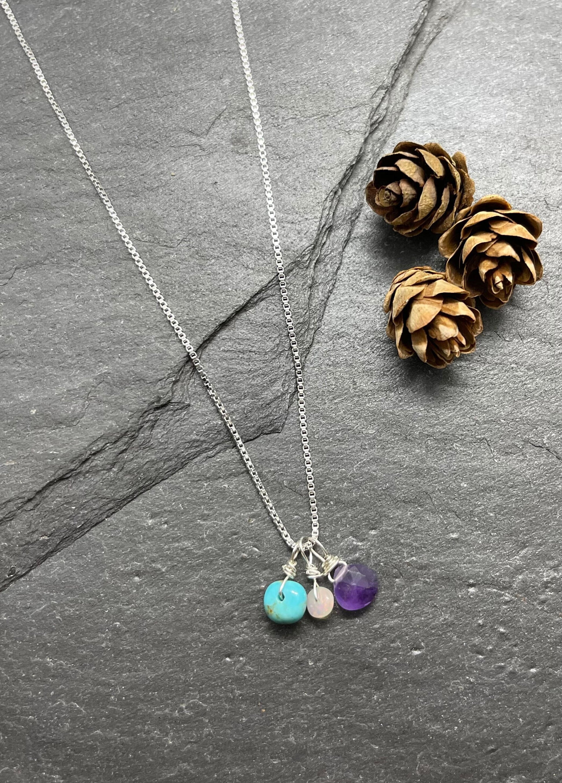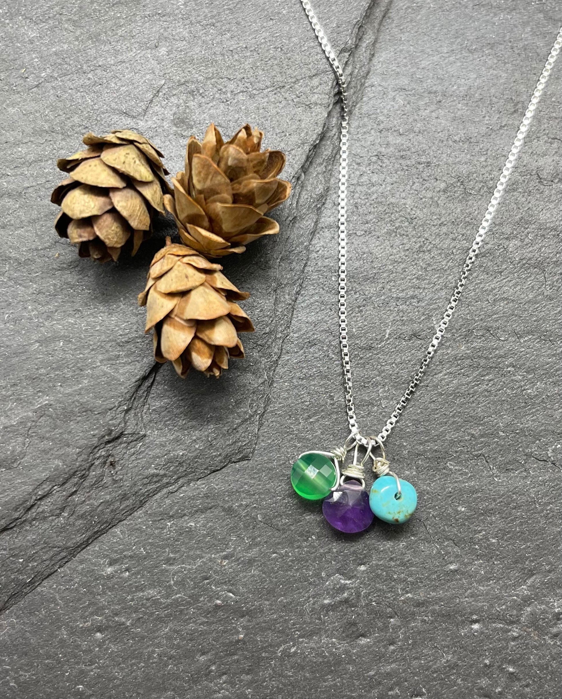 Women's Silver Birthstone Necklace, Handcrafted New Mom Gift, Boho Woodland Stone Jewelry